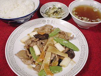 蠣油牛肉 オイスターソースと牛肉の炒め ¥1,200(税込) ※ご飯(お替わり1回無料)・スープ付 デザート無料サービス中! (平日のみ) |